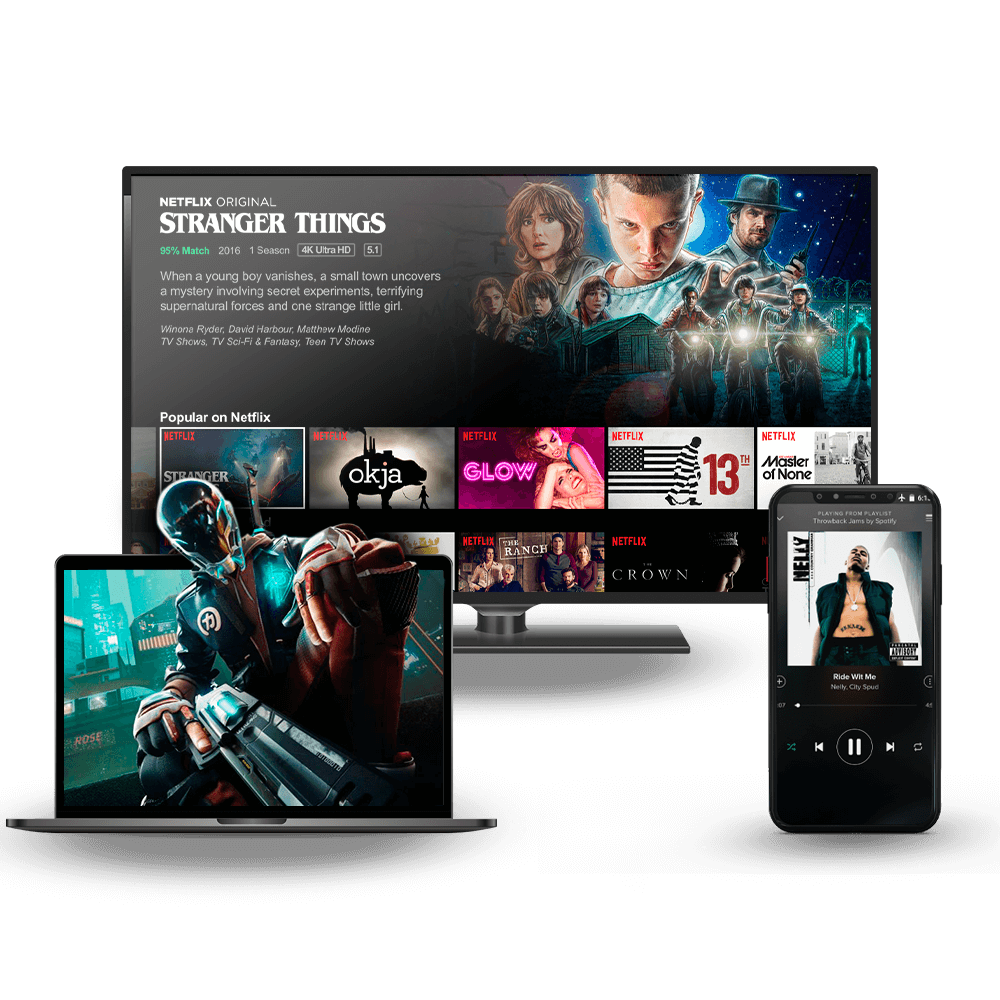 Faça o que quiser usando nossa internet. Jogar os melhores games, assistir séries e filmes em 4k, escutar suas músicas preferidas e mais!